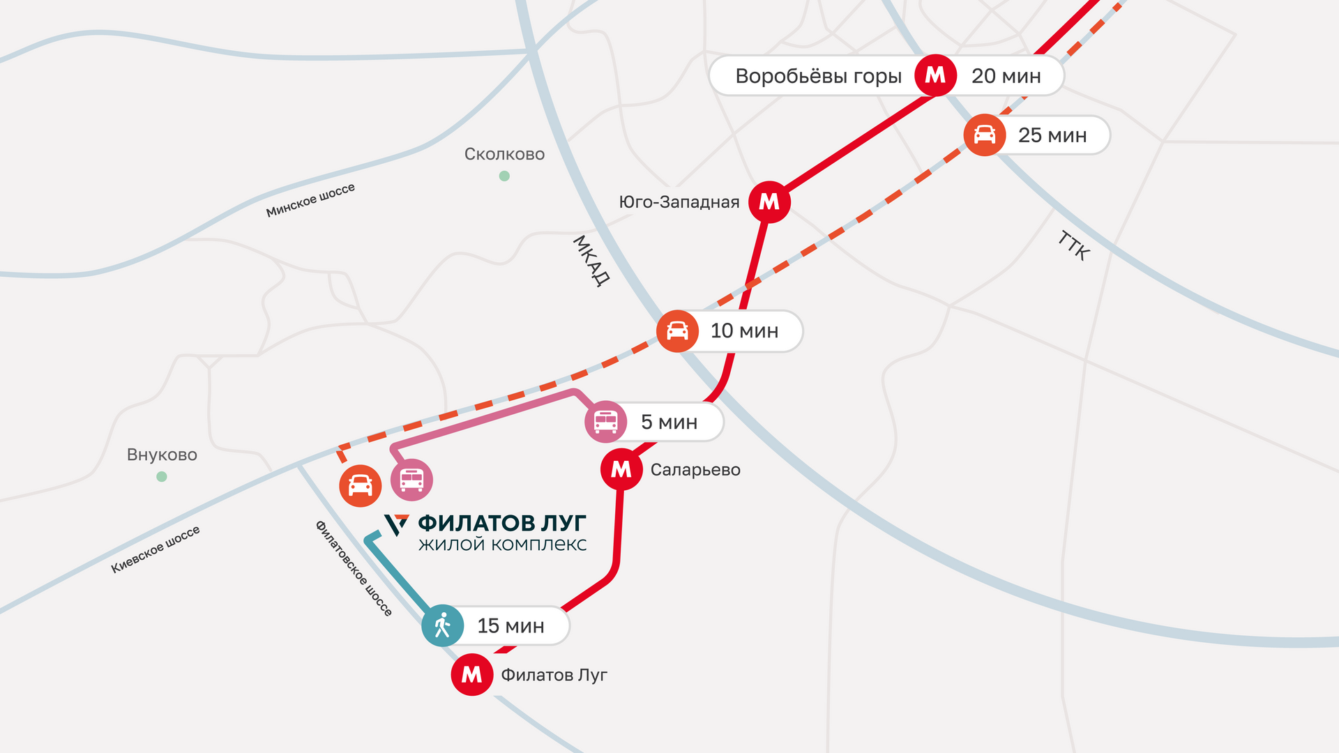 «Филатов луг» — просторный зеленый квартал комфорт-класса в окружении Ульяновского лесопарка и в 6 км от МКАД. Проект включает 10 жилых корпусов переменной этажности, развитую социальную инфраструктуру и коммерческие помещения. Идеальная транспортная доступность, близость к метро «Саларьево» и «Филатов Луг», а также продуманные благоустроенные дворы без машин делают этот проект одним из самых привлекательных для жизни в столичном регионе.
