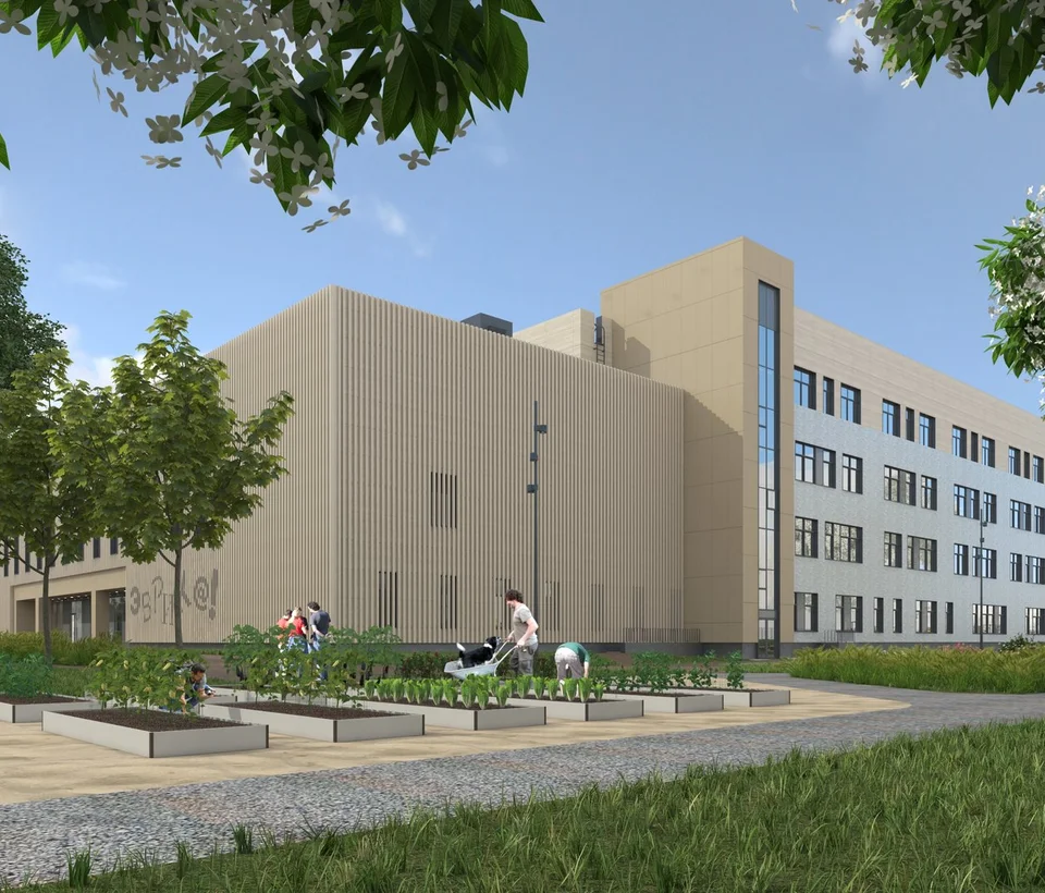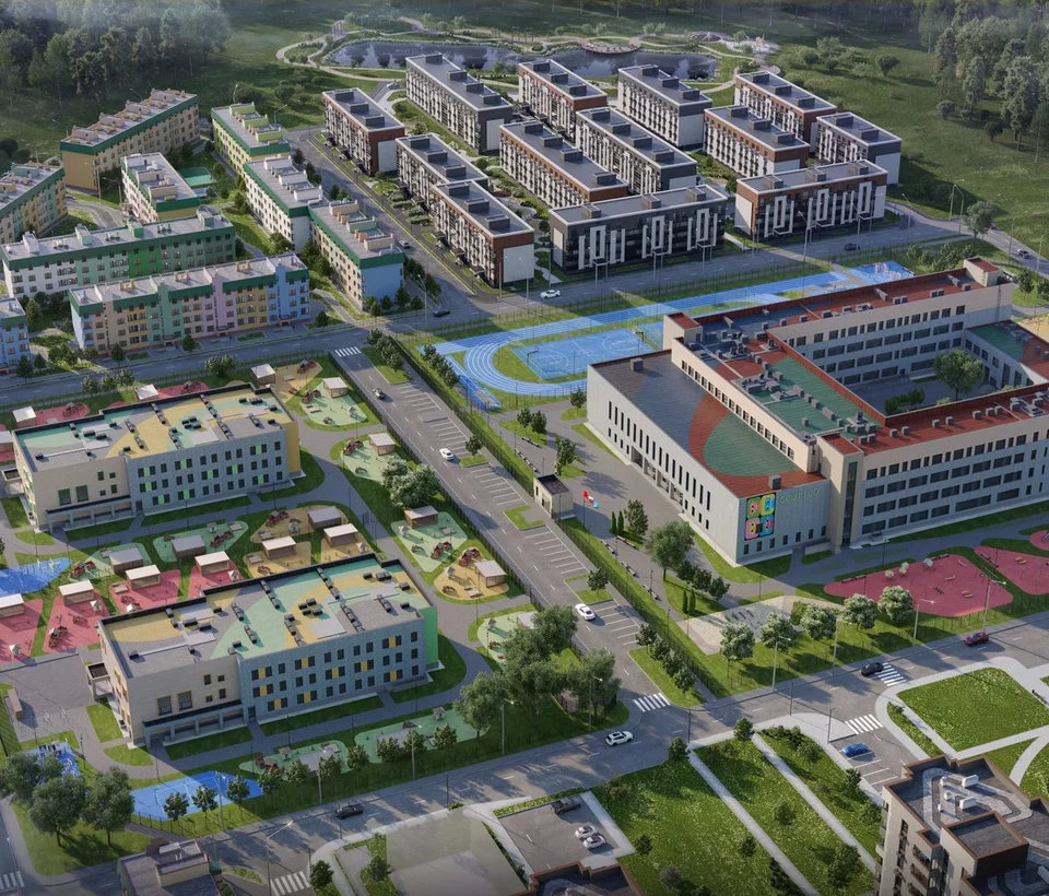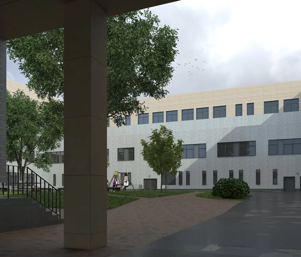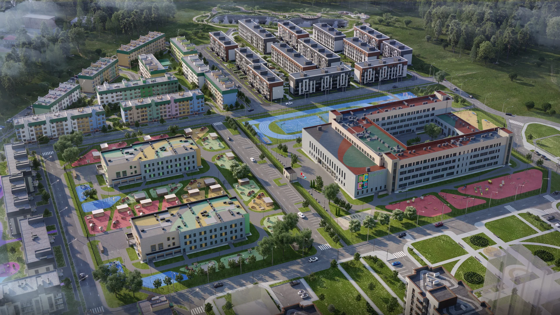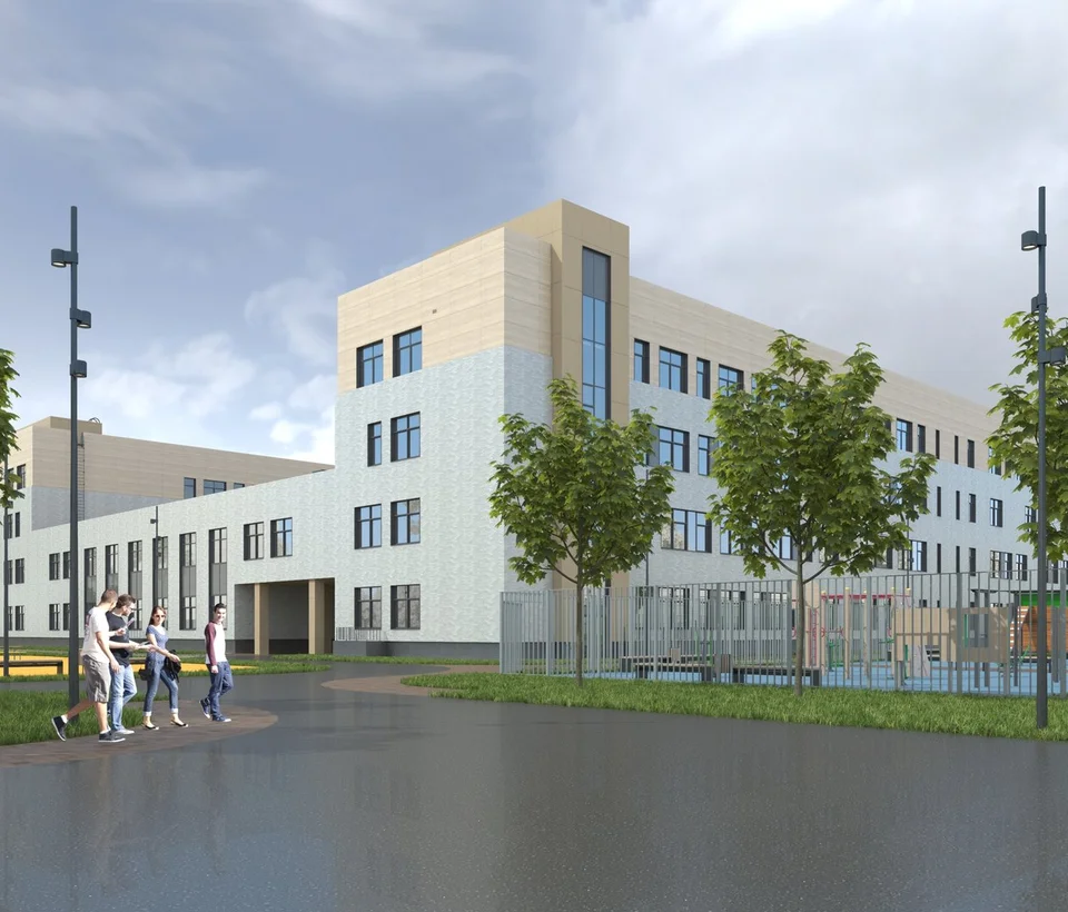 На территории комплекса будет реализован современный образовательный кластер: общеобразовательная школа на 1100 мест и 2 детских сада по 260 мест каждый.