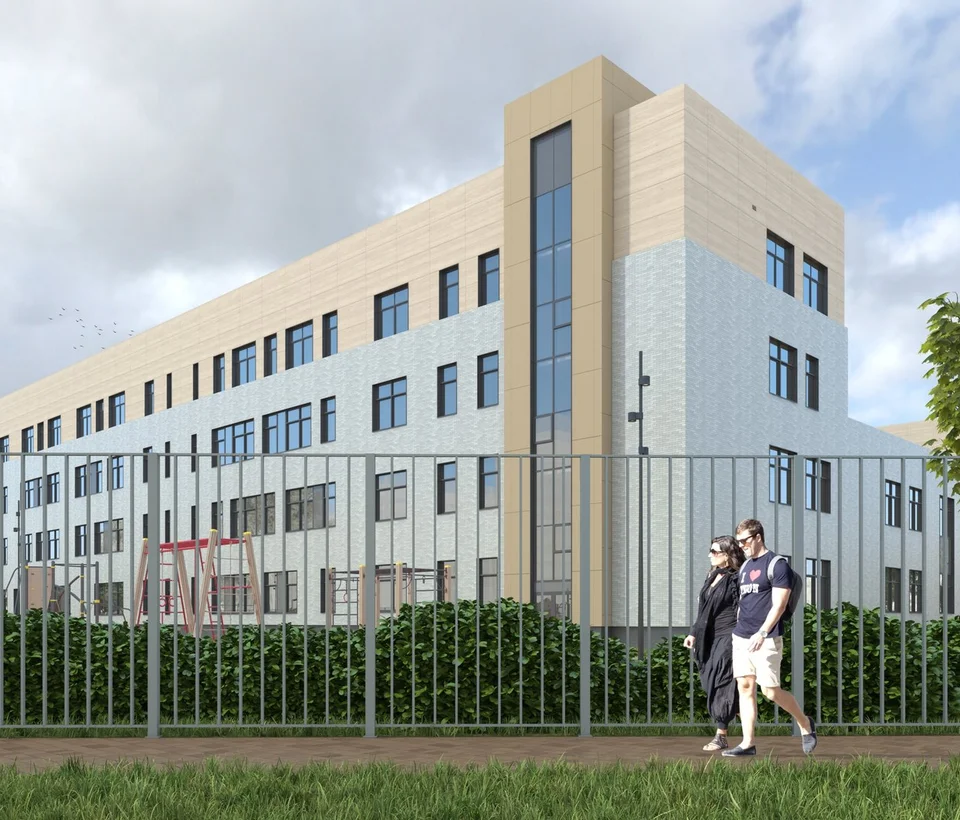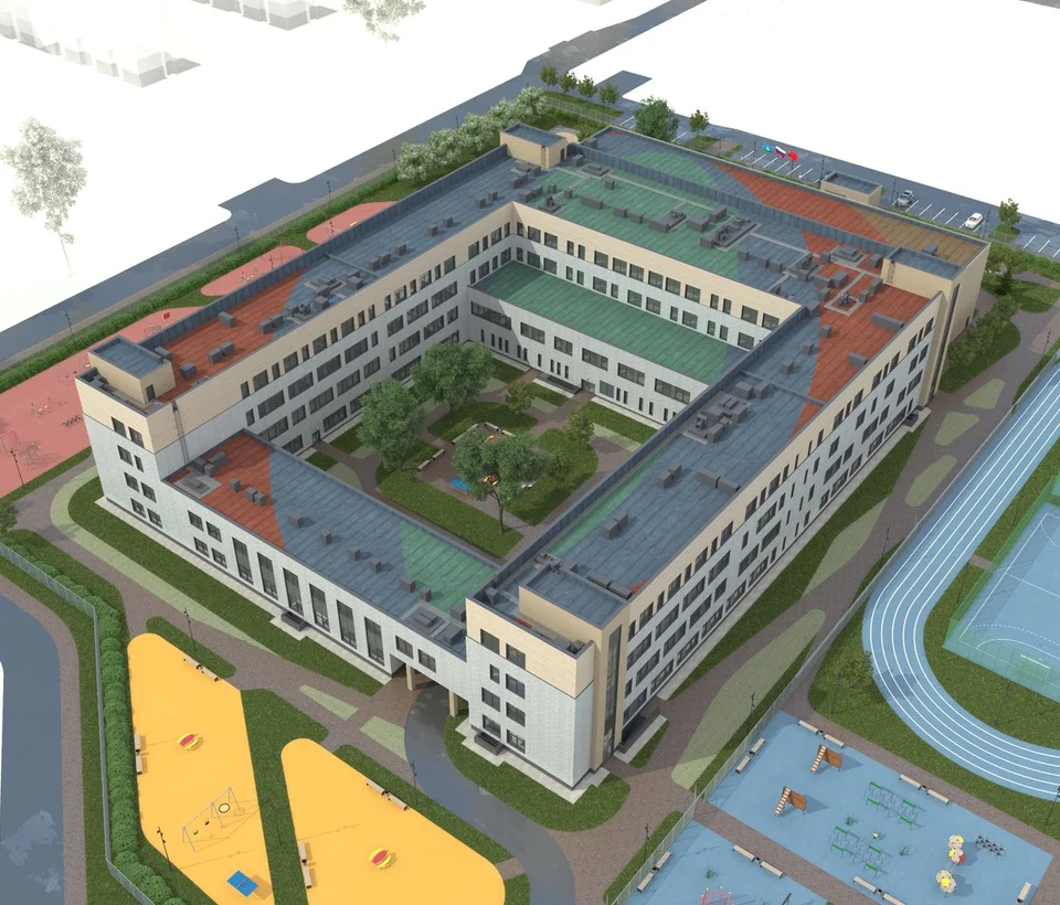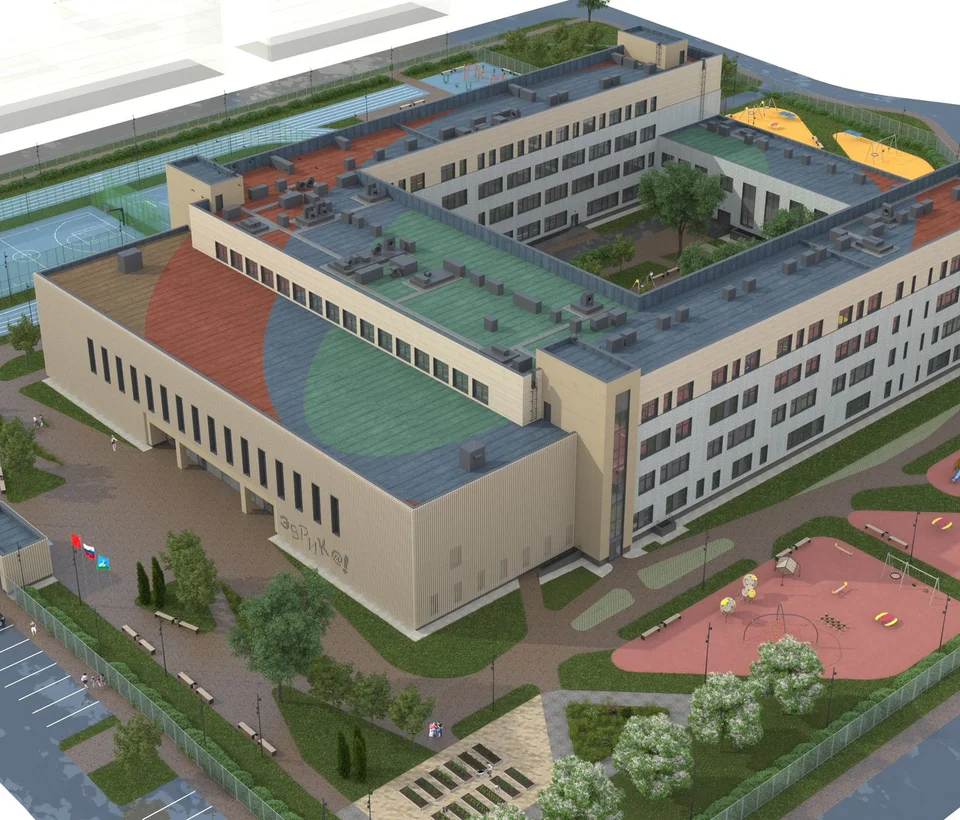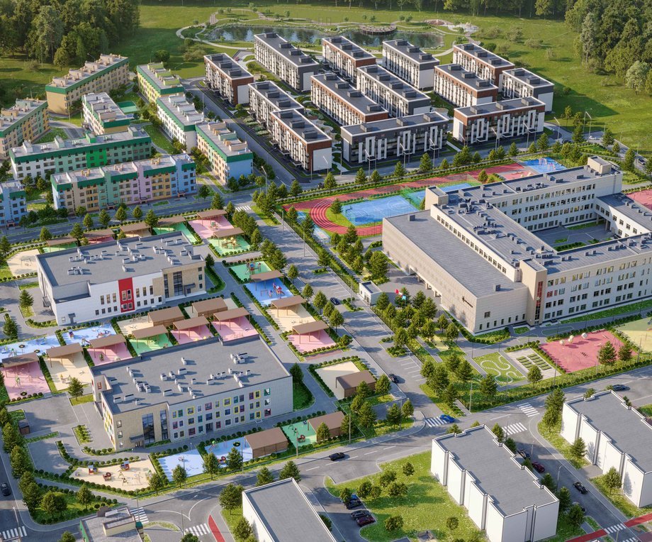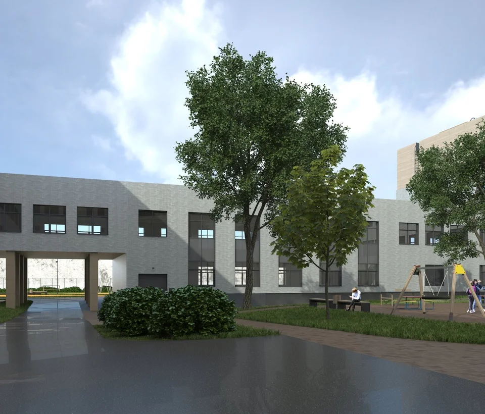 На территории комплекса будет реализован современный образовательный кластер: общеобразовательная школа на 1100 мест и 2 детских сада по 260 мест каждый.